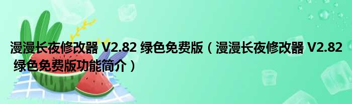 导读 大家好,关于漫漫长夜修改器 V2 82 绿色免费版,漫漫长夜修改器 V2 82 绿色免费版功能简介这个很多人还不知道,小勒来为大家解答以上的问