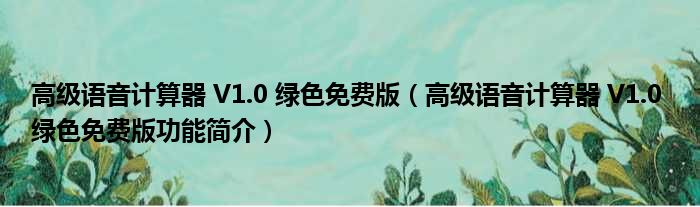 高级语音计算器 V1.0 绿色免费版(高级语音计算器 V1.0 绿色免费版功能简介)