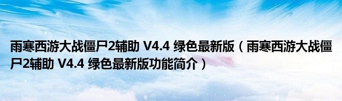 雨寒西游大战僵尸2辅助 V4.4 绿色最新版(雨寒西游大战僵尸2辅助 V4.4 绿色最新版功能简介)