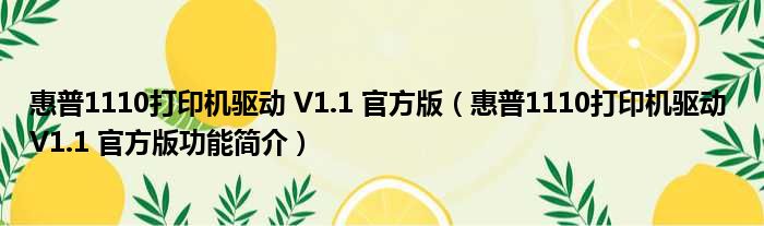 惠普1110打印机驱动 V1.1 官方版(惠普1110打印机驱动 V1.1 官方版功能简介)