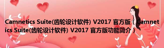 导读 大家好,关于Camnetics Suite(齿轮设计软件) V2017 官方版,Camnetics Suite(齿轮设计软件) V2017 官方版功能简介这个很多人还不知道,