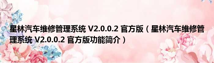 星林汽车维修管理系统 V2.0.0.2 官方版(星林汽车维修管理系统 V2.0.0.2 官方版功能简介)