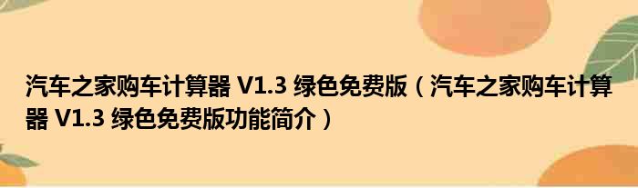 汽车之家购车计算器 V1.3 绿色免费版(汽车之家购车计算器 V1.3 绿色免费版功能简介)