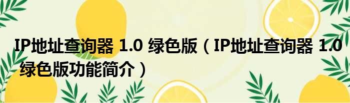 IP地址查询器 1.0 绿色版(IP地址查询器 1.0 绿色版功能简介)