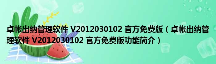卓帐出纳管理软件 V2012030102 官方免费版(卓帐出纳管理软件 V2012030102 官方免费版功能简介)