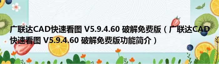 广联达CAD快速看图 V5.9.4.60 破解免费版(广联达CAD快速看图 V5.9.4.60 破解免费版功能简介)