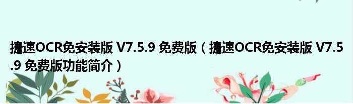 捷速OCR免安装版 V7.5.9 免费版(捷速OCR免安装版 V7.5.9 免费版功能简介)