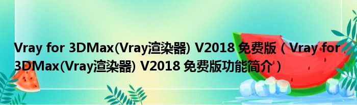 Vray for 3DMax(Vray渲染器) V2018 免费版(Vray for 3DMax(Vray渲染器) V2018 免费版功能简介)