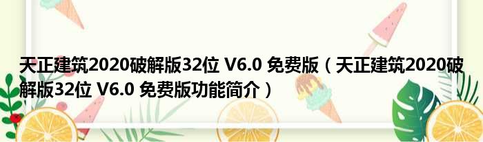 天正建筑2020破解版32位 V6.0 免费版(天正建筑2020破解版32位 V6.0 免费版功能简介)