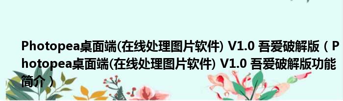 Photopea桌面端(在线处理图片软件) V1.0 吾爱破解版(Photopea桌面端(在线处理图片软件) V1.0 吾爱破解版功能简介)