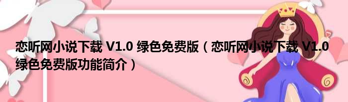 恋听网小说下载 V1.0 绿色免费版(恋听网小说下载 V1.0 绿色免费版功能简介)