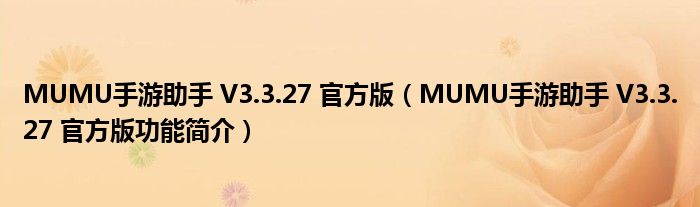 MUMU手游助手 V3.3.27 官方版(MUMU手游助手 V3.3.27 官方版功能简介)