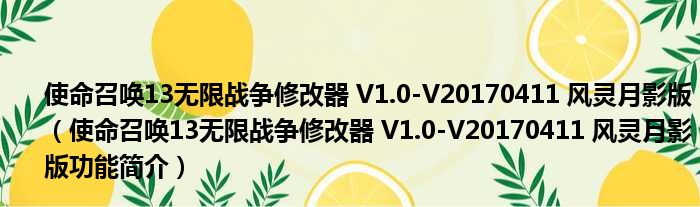 导读 大家好,关于使命召唤13无限战争修改器 V1 0-V20170411 风灵月影版,使命召唤13无限战争修改器 V1 0-V20170411 风灵月影版功能简介这个