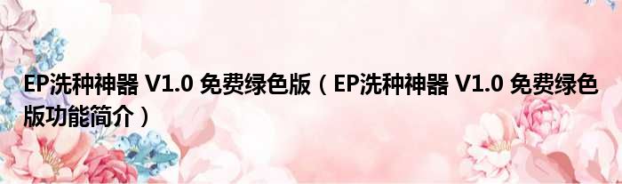 EP洗种神器 V1.0 免费绿色版(EP洗种神器 V1.0 免费绿色版功能简介)