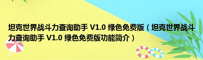 坦克世界战斗力查询助手 V1.0 绿色免费版(坦克世界战斗力查询助手 V1.0 绿色免费版功能简介)