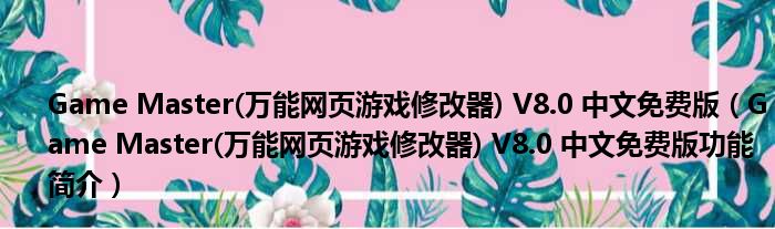 Game Master(万能网页游戏修改器) V8.0 中文免费版(Game Master(万能网页游戏修改器) V8.0 中文免费版功能简介)