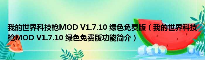 导读 大家好,关于我的世界科技枪MOD V1 7 10 绿色免费版,我的世界科技枪MOD V1 7 10 绿色免费版功能简介这个很多人还不知道,小勒来为大家解