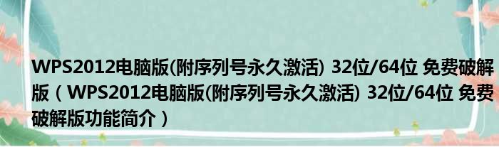 WPS2012电脑版(附序列号永久激活) 32位/64位 免费破解版(WPS2012电脑版(附序列号永久激活) 32位/64位 免费破解版功能简介)