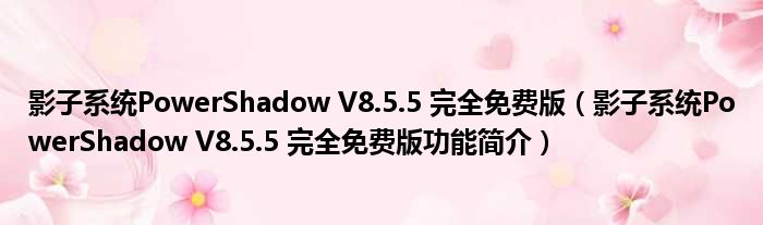 影子系统PowerShadow V8.5.5 完全免费版(影子系统PowerShadow V8.5.5 完全免费版功能简介)