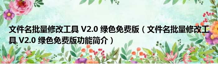 文件名批量修改工具 V2.0 绿色免费版(文件名批量修改工具 V2.0 绿色免费版功能简介)