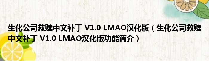 生化公司救赎中文补丁 V1.0 LMAO汉化版(生化公司救赎中文补丁 V1.0 LMAO汉化版功能简介)