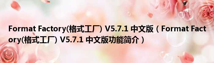 Format Factory(格式工厂) V5.7.1 中文版(Format Factory(格式工厂) V5.7.1 中文版功能简介)