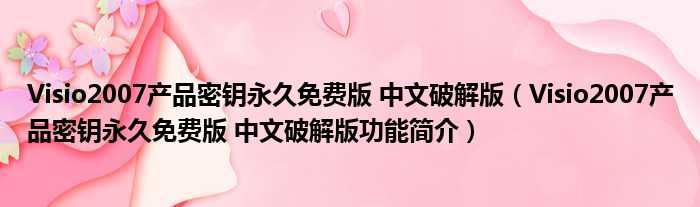 Visio2007产品密钥永久免费版 中文破解版(Visio2007产品密钥永久免费版 中文破解版功能简介)