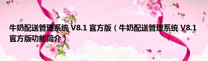 牛奶配送管理系统 V8.1 官方版(牛奶配送管理系统 V8.1 官方版功能简介)