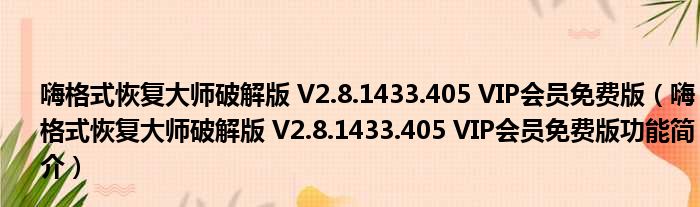 嗨格式恢复大师破解版 V2.8.1433.405 VIP会员免费版(嗨格式恢复大师破解版 V2.8.1433.405 VIP会员免费版功能简介)