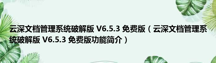 云深文档管理系统破解版 V6.5.3 免费版(云深文档管理系统破解版 V6.5.3 免费版功能简介)