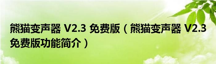熊猫变声器 V2.3 免费版(熊猫变声器 V2.3 免费版功能简介)