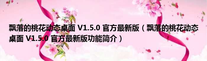 导读 大家好,关于飘落的桃花动态桌面 V1 5 0 官方最新版,飘落的桃花动态桌面 V1 5 0 官方最新版功能简介这个很多人还不知道,小勒来为大家解