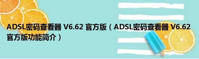 ADSL密码查看器 V6.62 官方版(ADSL密码查看器 V6.62 官方版功能简介)