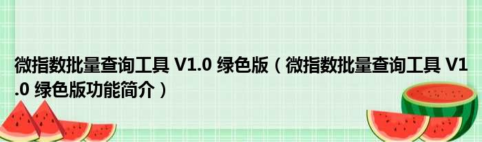 微指数批量查询工具 V1.0 绿色版(微指数批量查询工具 V1.0 绿色版功能简介)