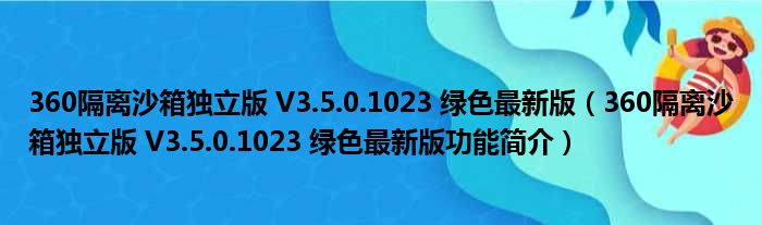 导读 大家好,关于360隔离沙箱独立版 V3 5 0 1023 绿色最新版,360隔离沙箱独立版 V3 5 0 1023 绿色最新版功能简介这个很多人还不知道,小勒来