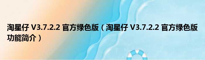 淘星仔 V3.7.2.2 官方绿色版(淘星仔 V3.7.2.2 官方绿色版功能简介)