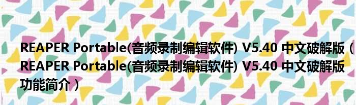 导读 大家好,关于REAPER Portable(音频录制编辑软件) V5 40 中文破解版,REAPER Portable(音频录制编辑软件) V5 40 中文破解版功能简介这