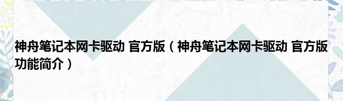 神舟笔记本网卡驱动 官方版(神舟笔记本网卡驱动 官方版功能简介)