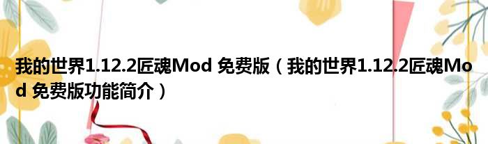 导读 大家好,关于我的世界1 12 2匠魂Mod 免费版,我的世界1 12 2匠魂Mod 免费版功能简介这个很多人还不知道,小勒来为大家解答以上的问题,现在