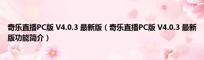 导读 大家好,关于奇乐直播PC版 V4 0 3 最新版,奇乐直播PC版 V4 0 3 最新版功能简介这个很多人还不知道,小勒来为大家解答以上的问题,现在让