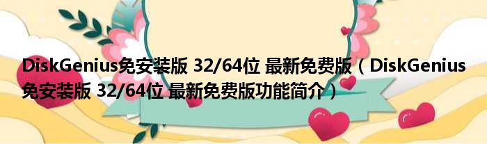 DiskGenius免安装版 32/64位 最新免费版(DiskGenius免安装版 32/64位 最新免费版功能简介)