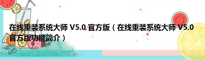 在线重装系统大师 V5.0 官方版(在线重装系统大师 V5.0 官方版功能简介)