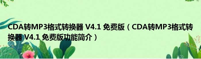 CDA转MP3格式转换器 V4.1 免费版(CDA转MP3格式转换器 V4.1 免费版功能简介)