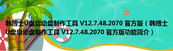 韩博士U盘启动盘制作工具 V12.7.48.2070 官方版(韩博士U盘启动盘制作工具 V12.7.48.2070 官方版功能简介)
