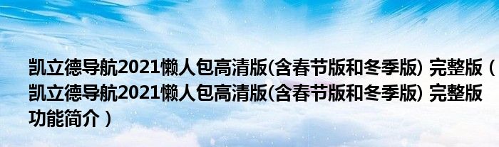 凯立德导航2021懒人包高清版(含春节版和冬季版) 完整版(凯立德导航2021懒人包高清版(含春节版和冬季版) 完整版功能简介)