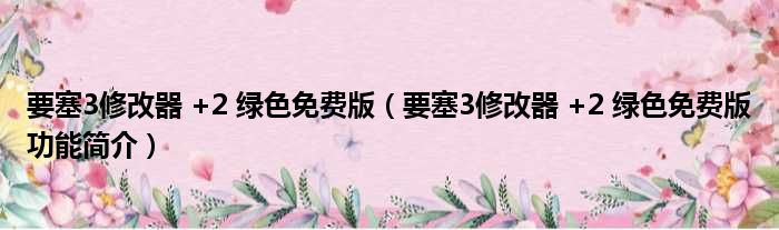 要塞3修改器 +2 绿色免费版(要塞3修改器 +2 绿色免费版功能简介)