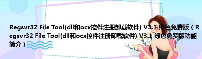 Regsvr32 File Tool(dll和ocx控件注册卸载软件) V3.1 绿色免费版(Regsvr32 File Tool(dll和ocx控件注册卸载软件) V3.1 绿色免费版功能简介)