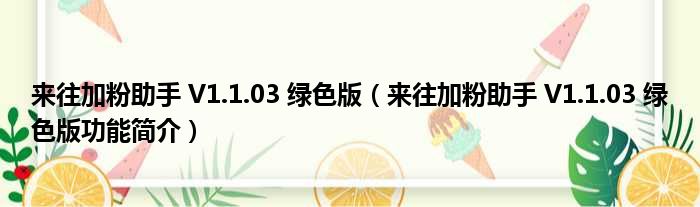 来往加粉助手 V1.1.03 绿色版(来往加粉助手 V1.1.03 绿色版功能简介)