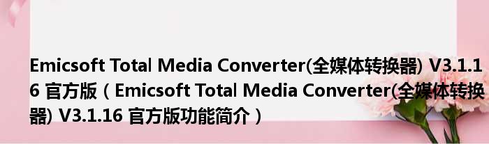 Emicsoft Total Media Converter(全媒体转换器) V3.1.16 官方版(Emicsoft Total Media Converter(全媒体转换器) V3.1.16 官方版功能简介)