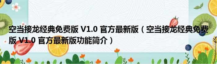 空当接龙经典免费版 V1.0 官方最新版(空当接龙经典免费版 V1.0 官方最新版功能简介)